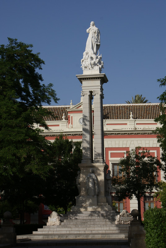 Monumento a la Inmaculada ConcepciónEl Monumento a la Inmaculada Concepción está situado en la Plaza del Triunfo de Sevilla, entre la Catedral Santa María de la Sede y el Real Alcázar. La ciudad esperó hasta 1917 para tener este monumento a la Virgen y a la devoción de la ciudad. El monumento se proyecta con ocasión de las amplias y variadas reformas que la ciudad sufre ante el proyecto de la Exposición Iberoamericana. Junto con la reurbanización del barrio de Santa Cruz se hace también una remodelación de la Plaza del Triunfo.